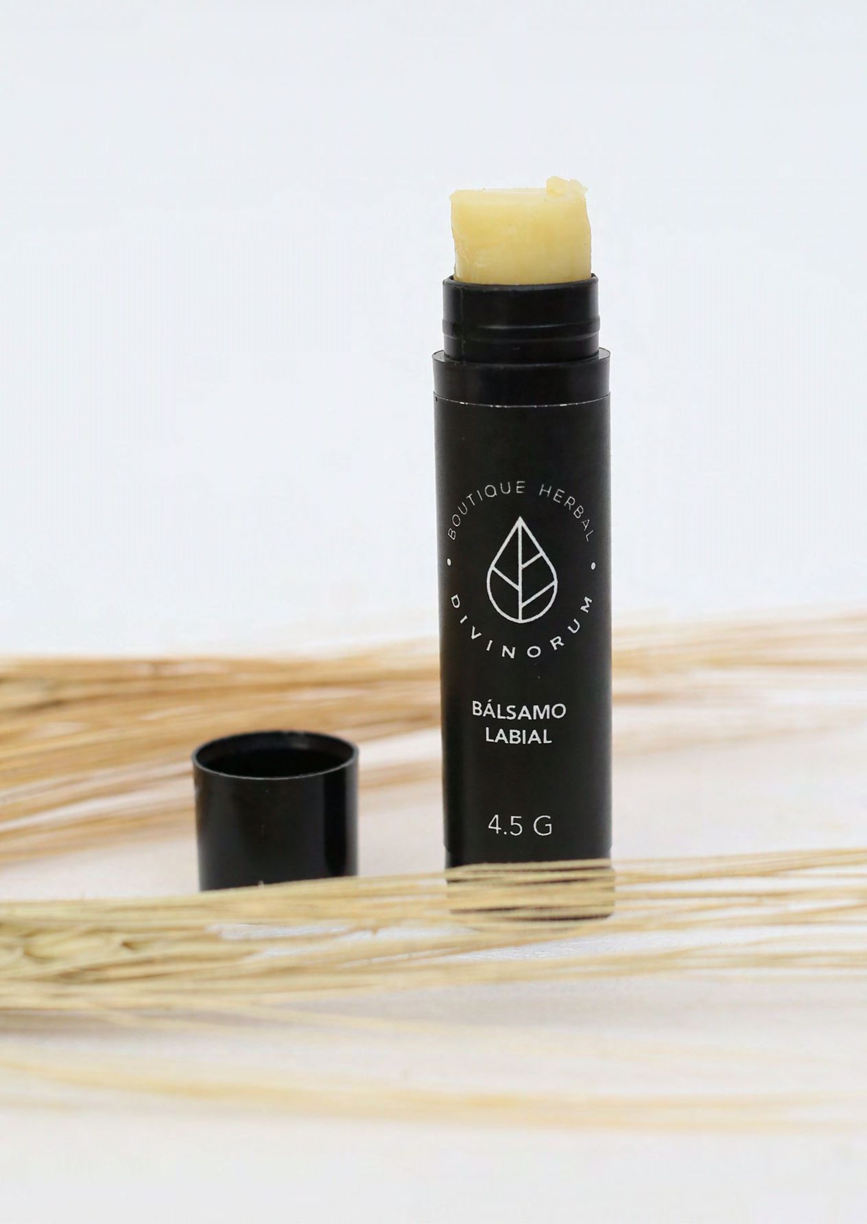 Bálsamo labial vegano con mantecas vegetales y aceite de cáñamo. Humectación profunda, protege y repara los labios secos y agrietados.